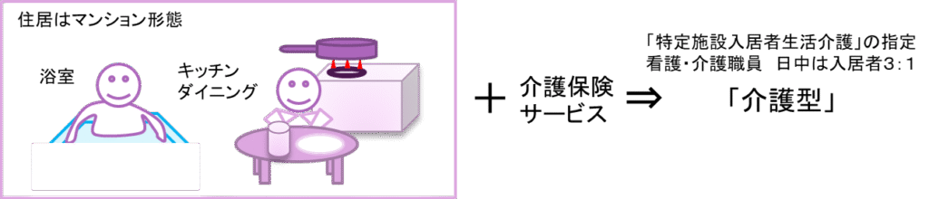 - 常駐スタッフから介護サービスを受けられるような「介護型」、後述の有料老人ホームと同等の機能を有するものもあります