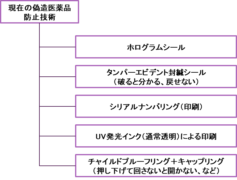 例えば海外で、ライセンス生産している薬品の包装箱の印刷会社が、ひそかに箱を過剰に生産して横流しすると、見た目は正規品の箱の中に偽造医薬品を入れることができます